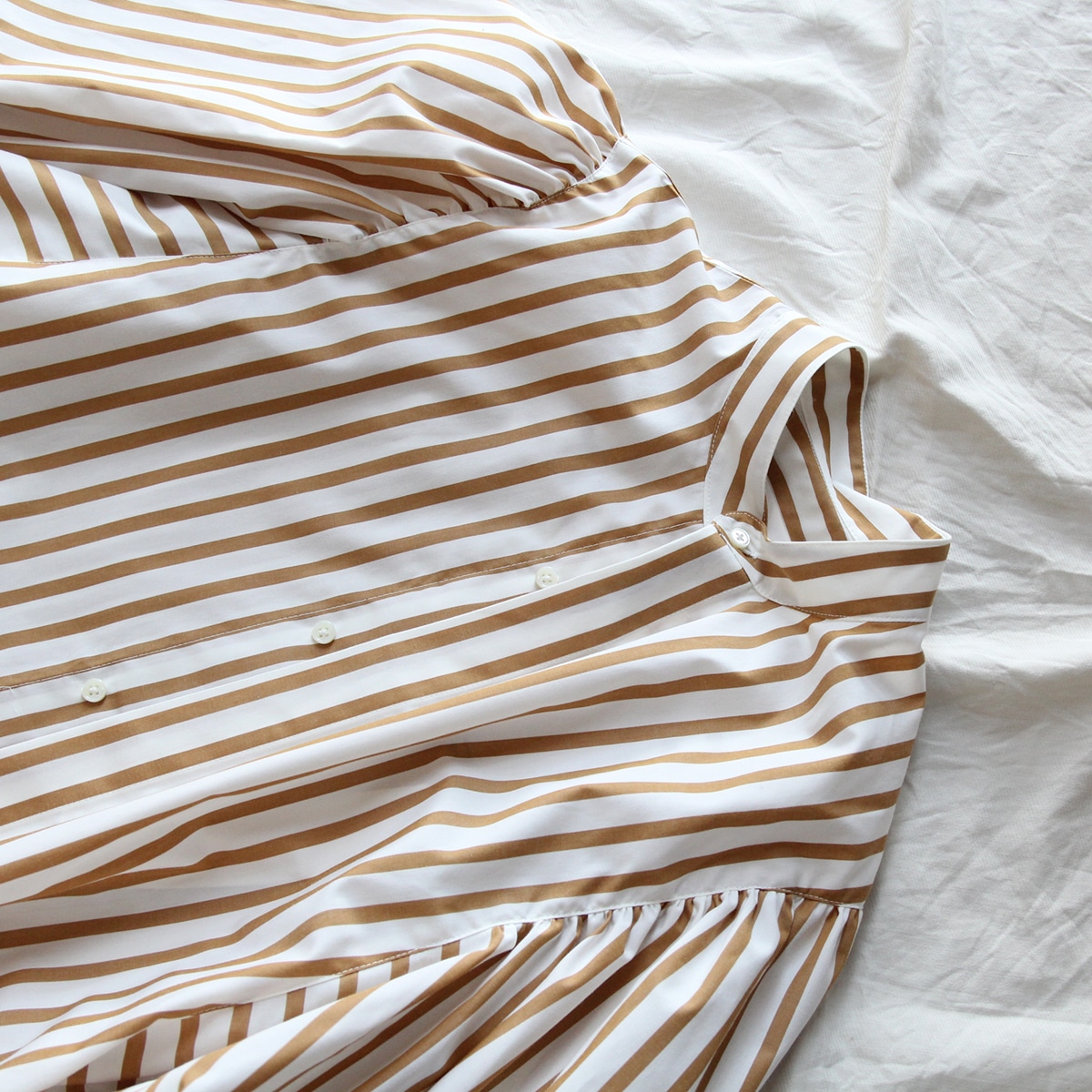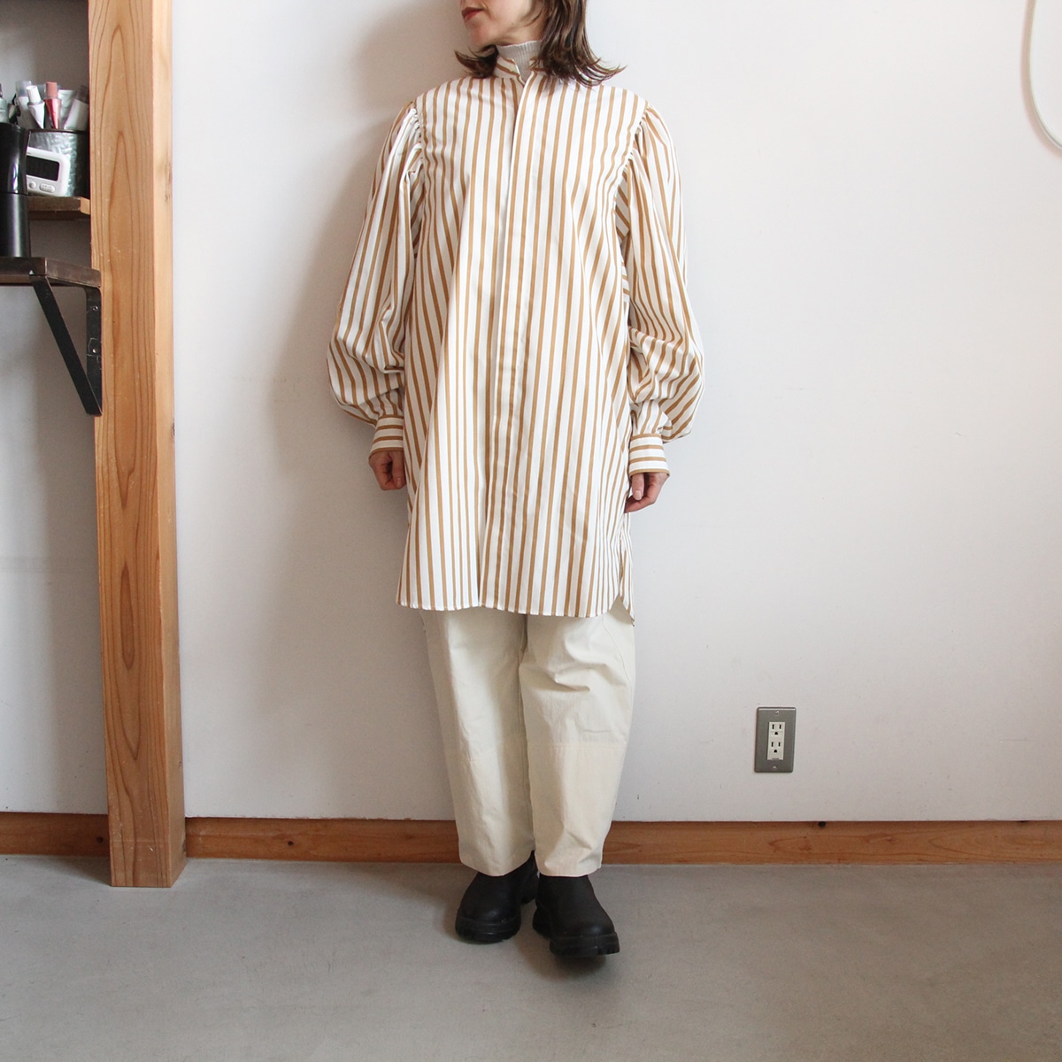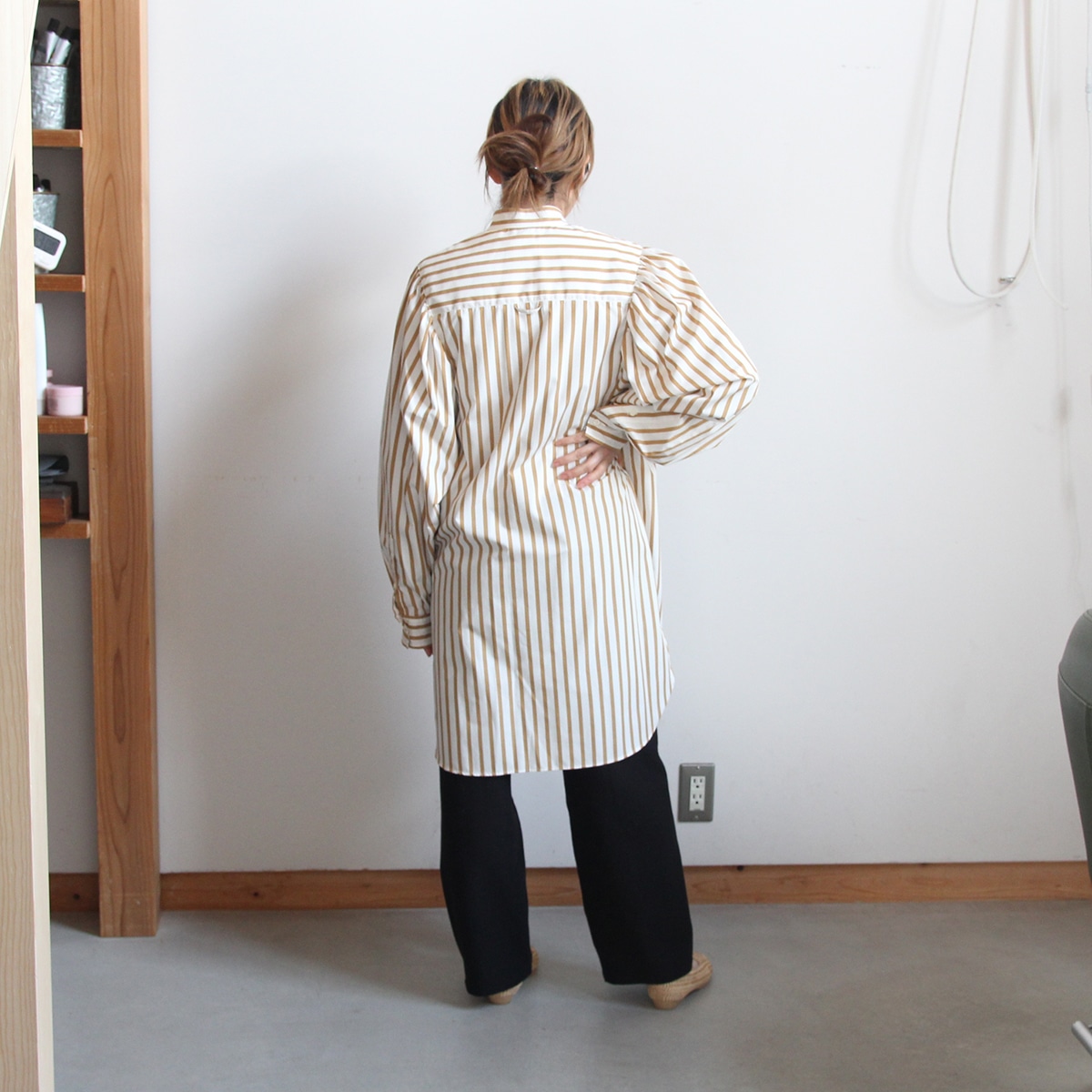 袖にギャザーを入れてぐっと袖下を落とした袖のボリュームが、大人の抜け感と可愛さ叶えてくれるチュニック丈ブラウスです。