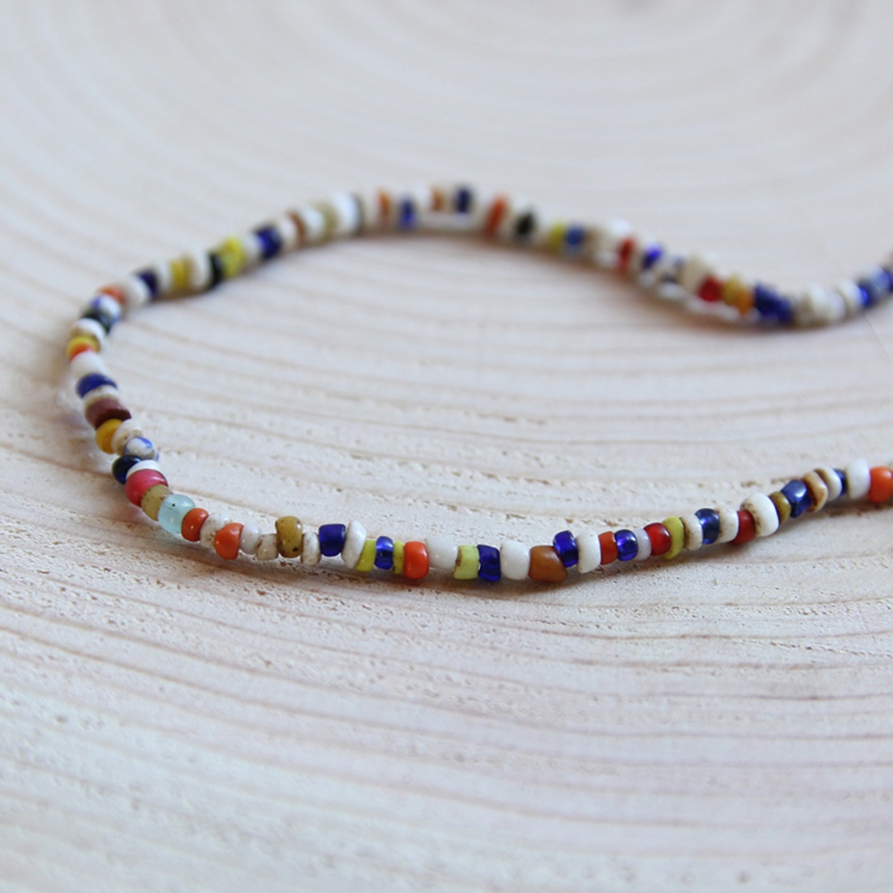 主にインドネシア、ジャワ島から出土した古代ガラスビーズ。カラフルなカラーリングながら、ビンテージならではの落ち着いた色合いで、コーディネートがしやすいです。