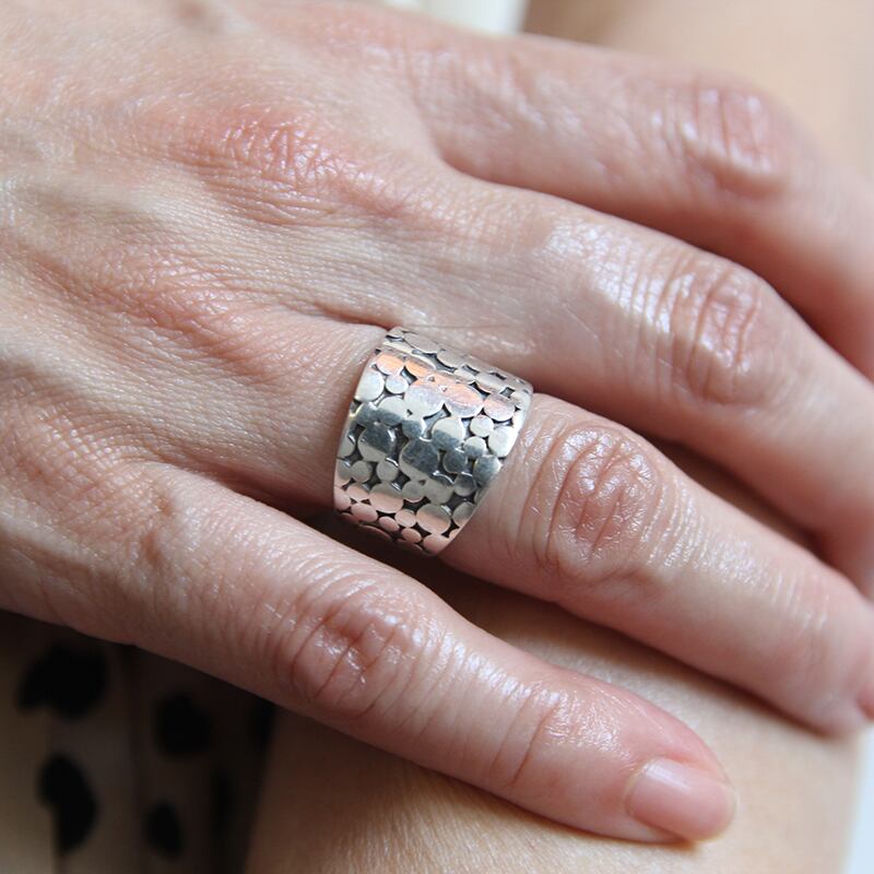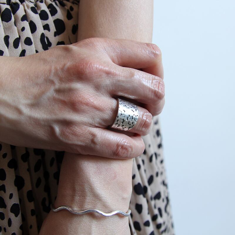 個性的でありながらハード過ぎず上品さも感じられ、コーディネートに溶け込みやすいので女性にもおすすめです。ユニセックスアイテム。