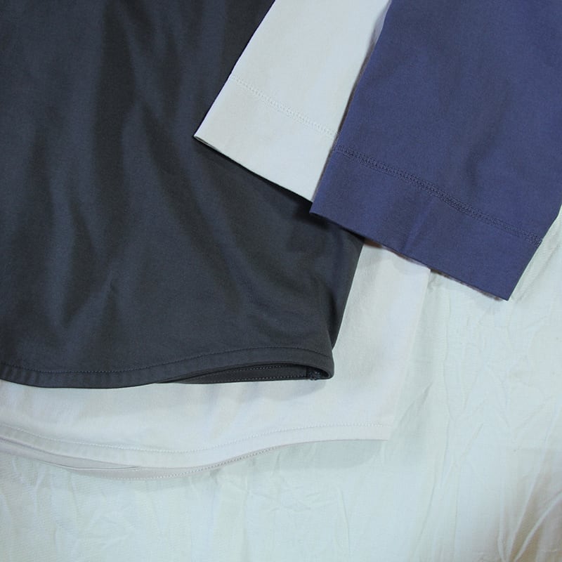 繊維長の長い超長繊維綿を使用し、加工により糸を締め仕上げた後に表面の毛羽を取り除いた天竺素材。