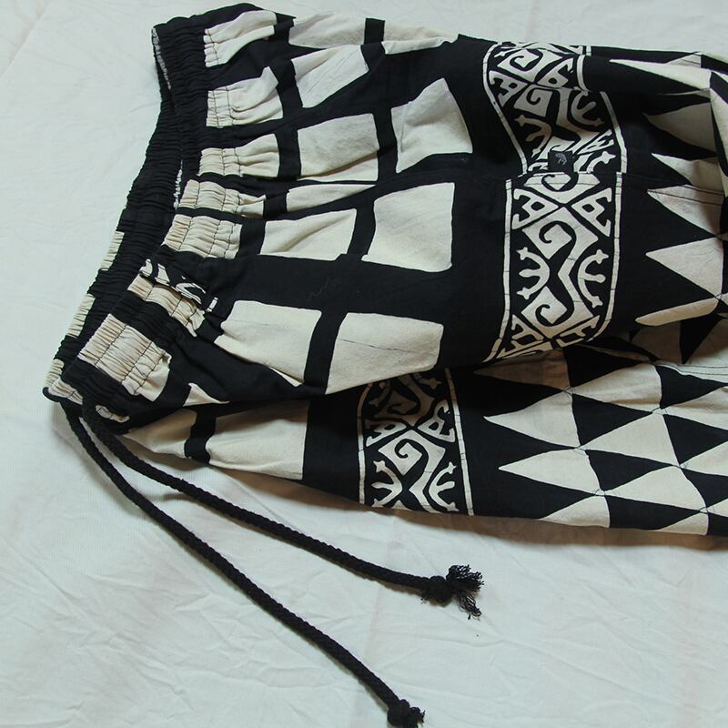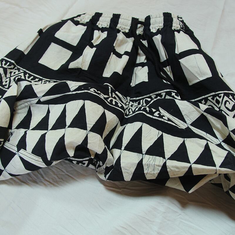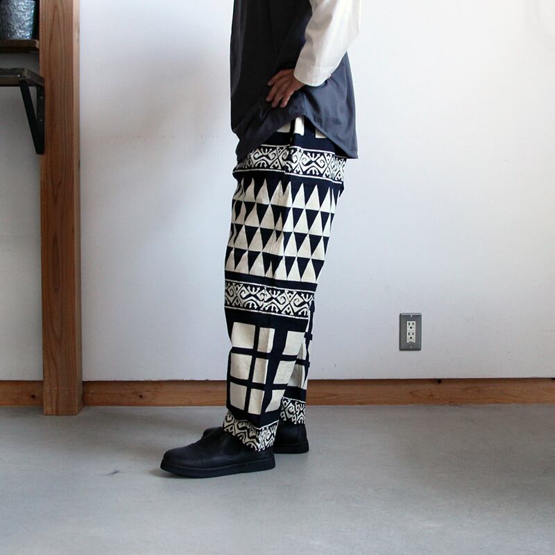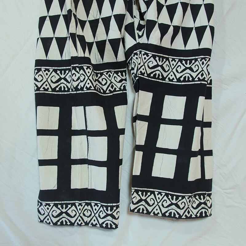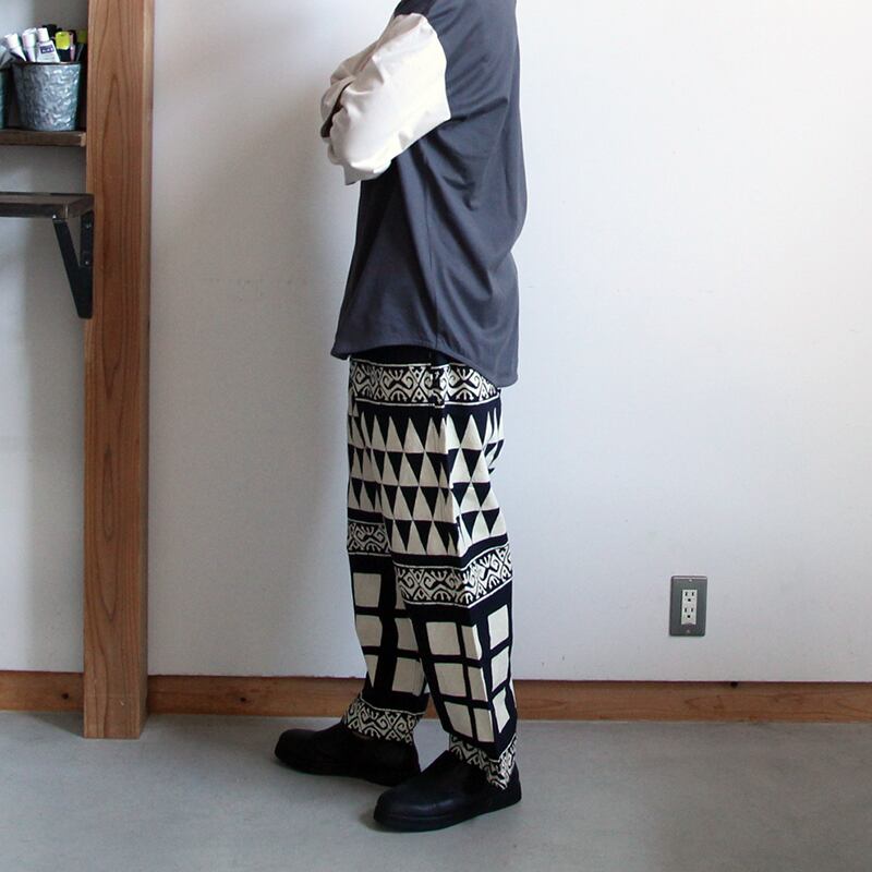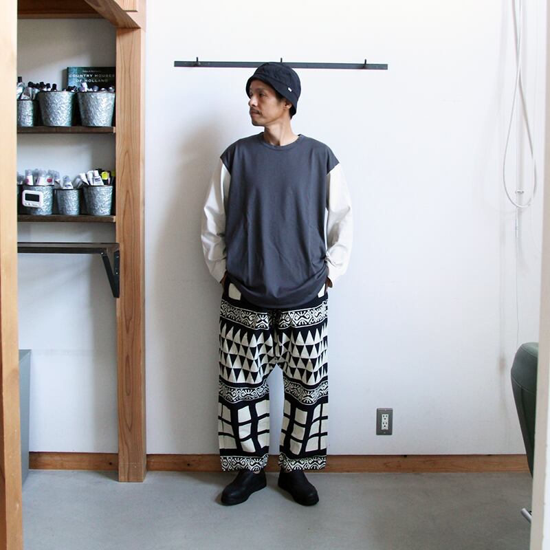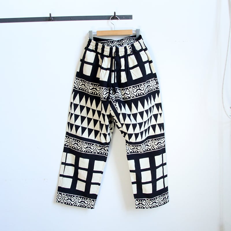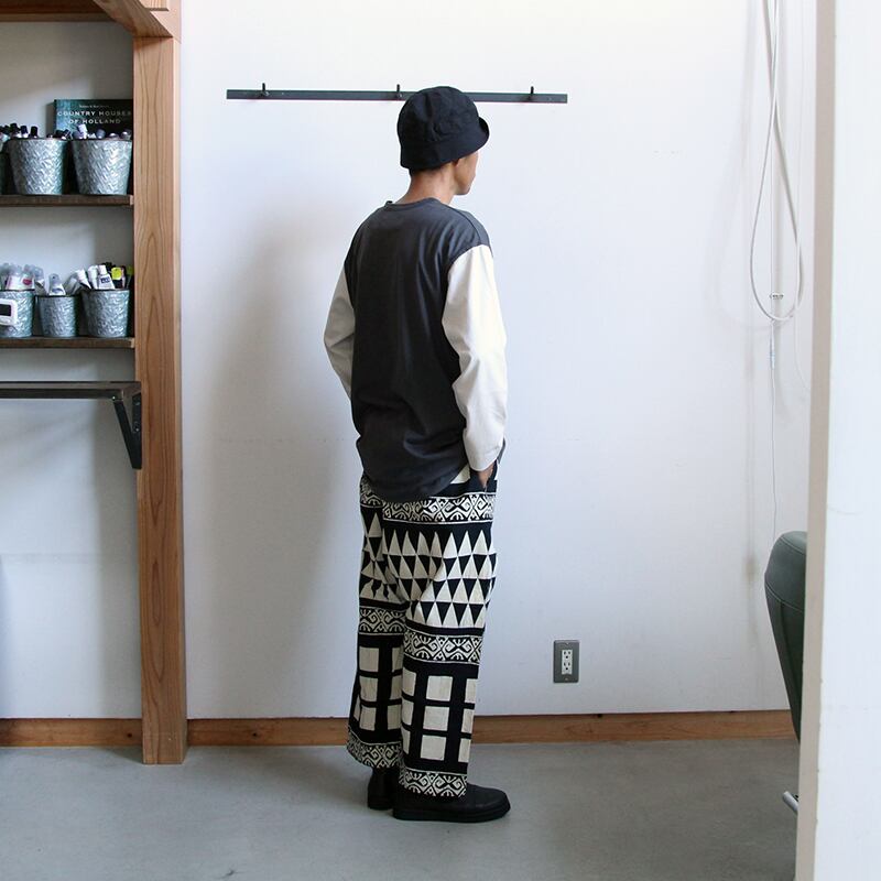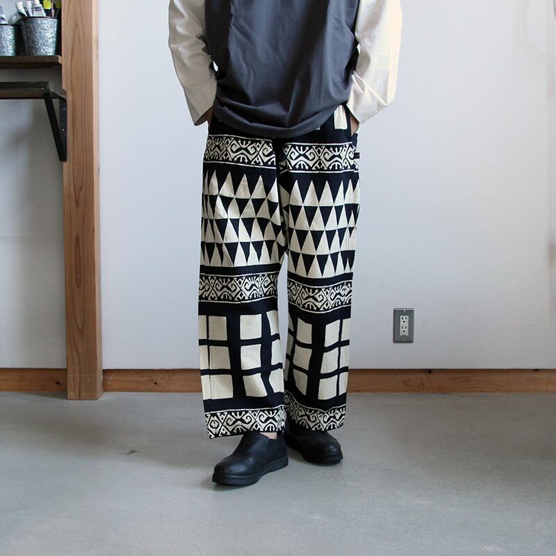 履き心地の良いガゼット仕様のイージーパンツで、キーホルダーループも装備。シンプルになりがちなスタイルにぴったりな総柄バティクパンツです。