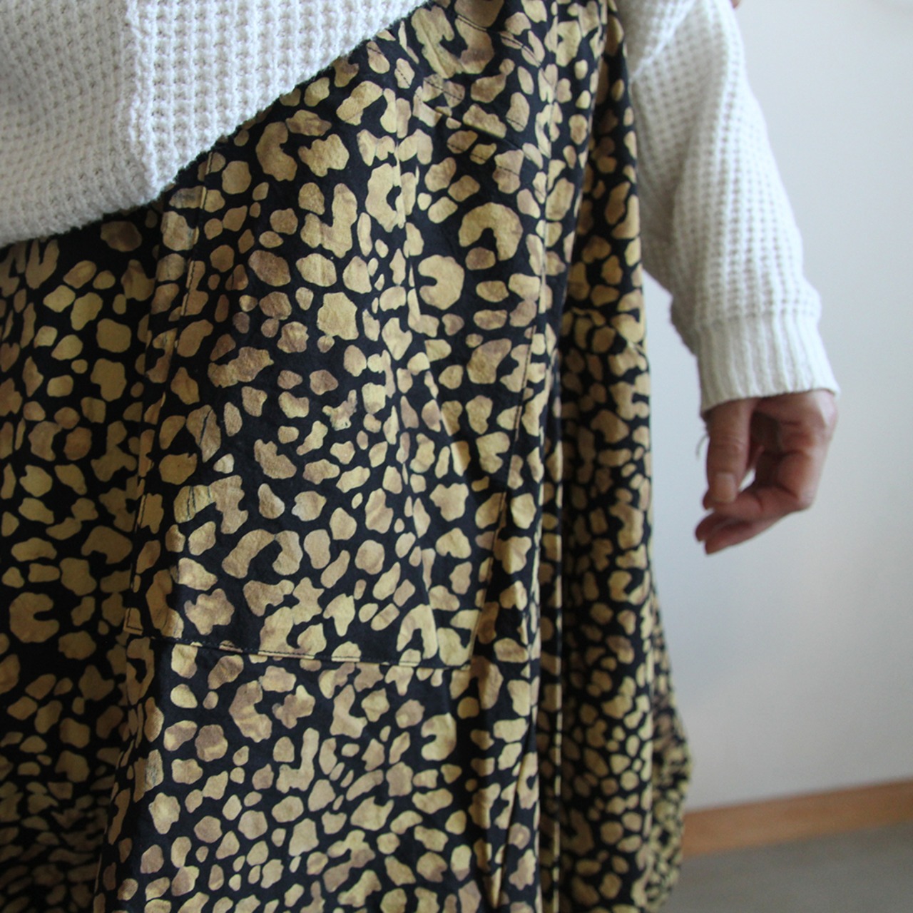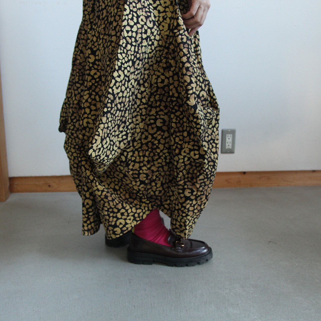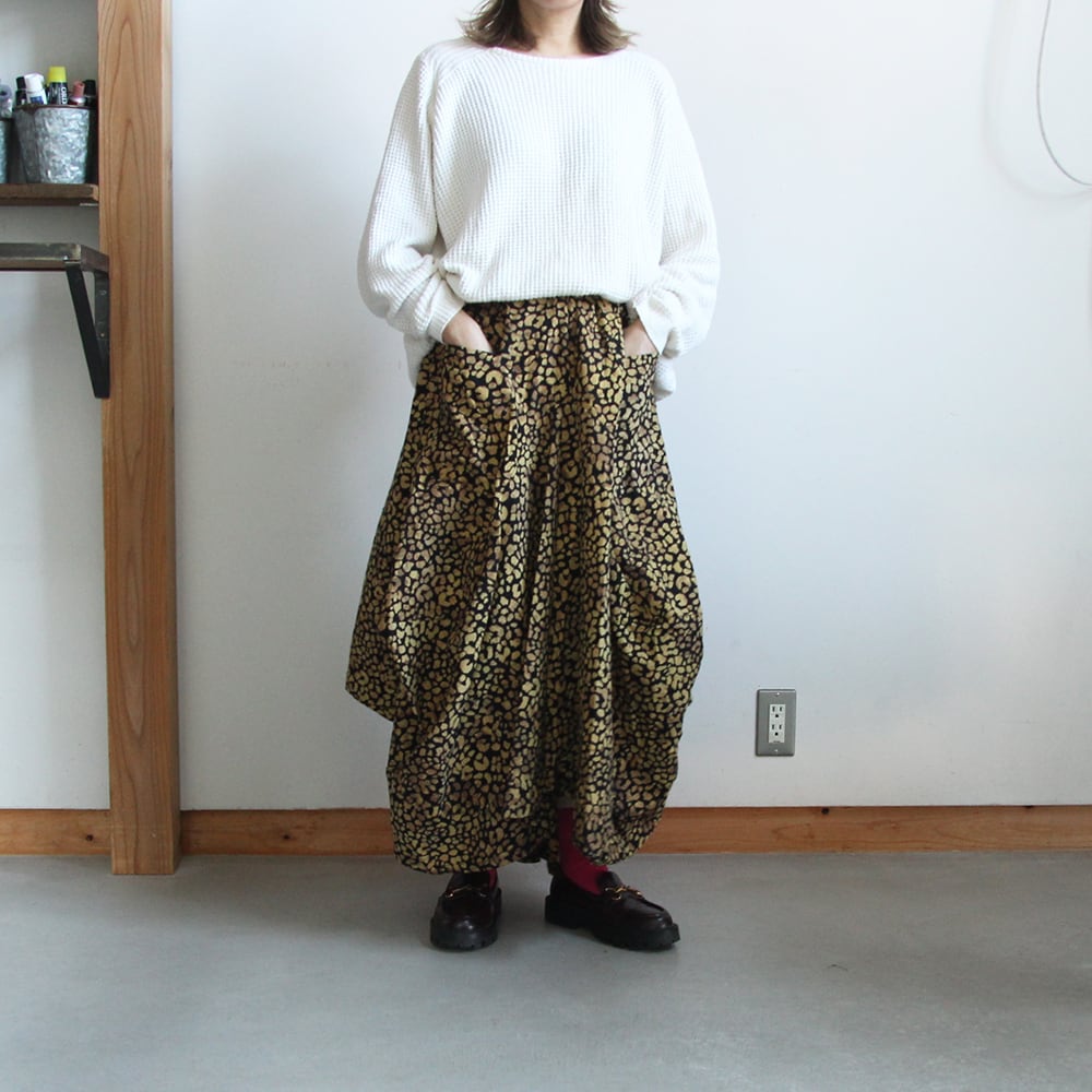 レオパード柄のバティック生地を贅沢に使用したバルーンスカートです。