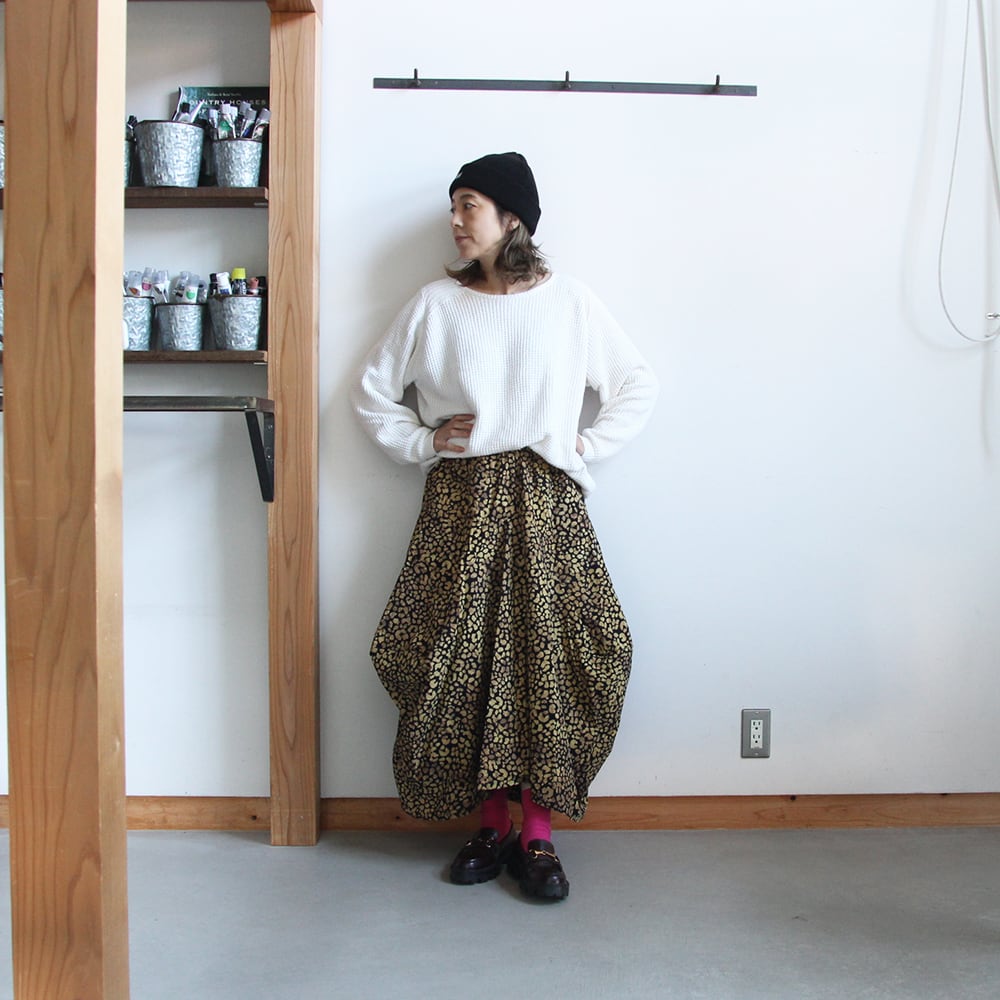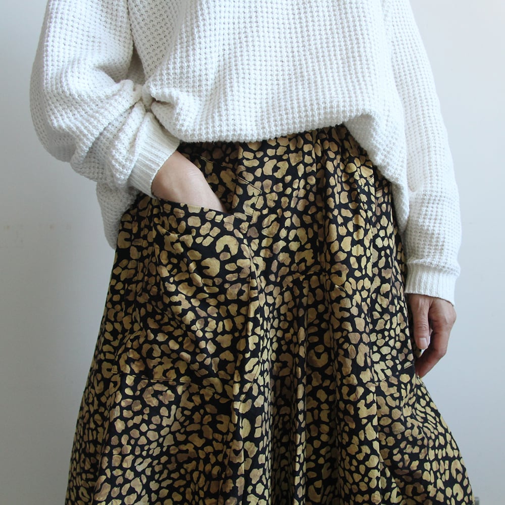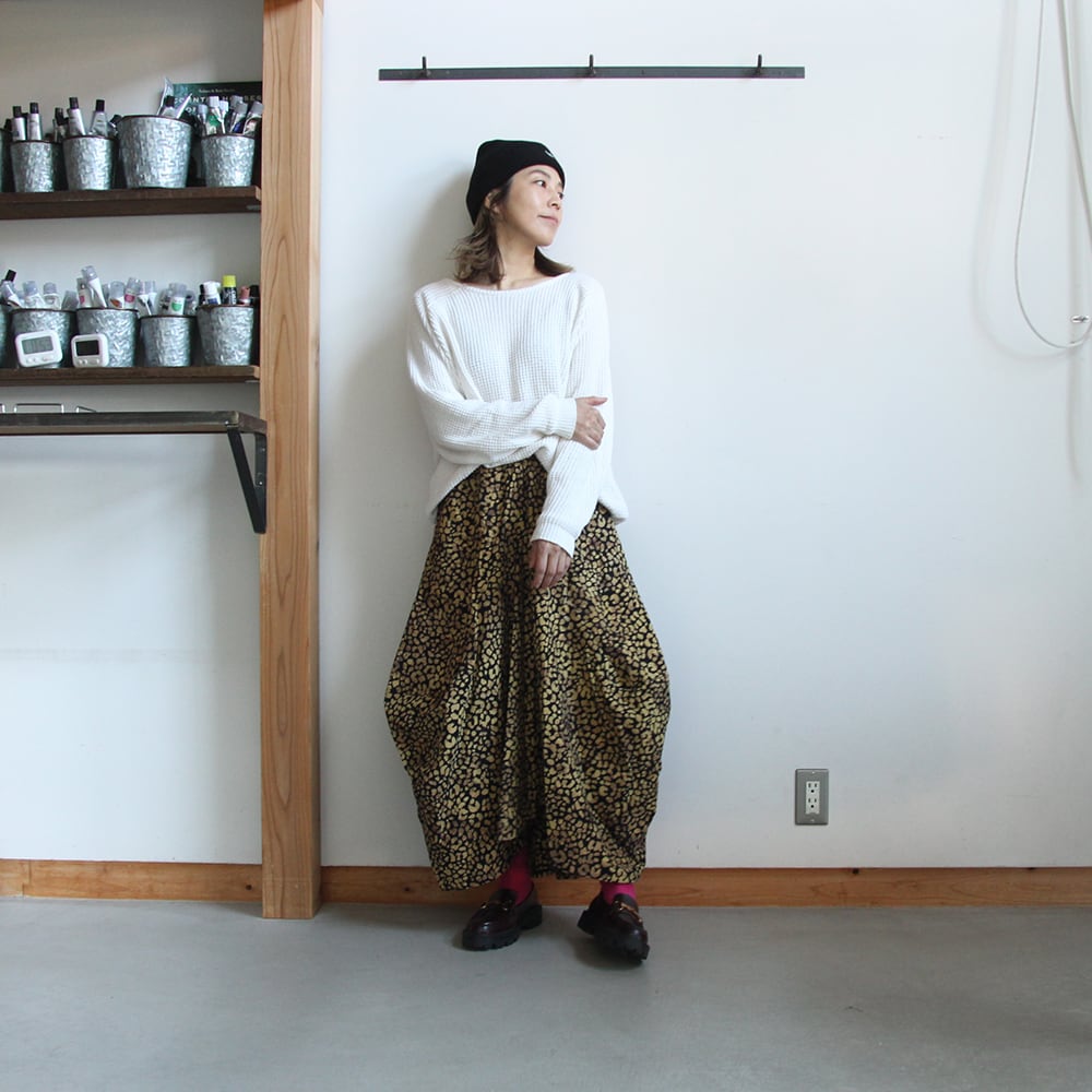 レオパード柄のバティック生地を贅沢に使用したバルーンスカートです。