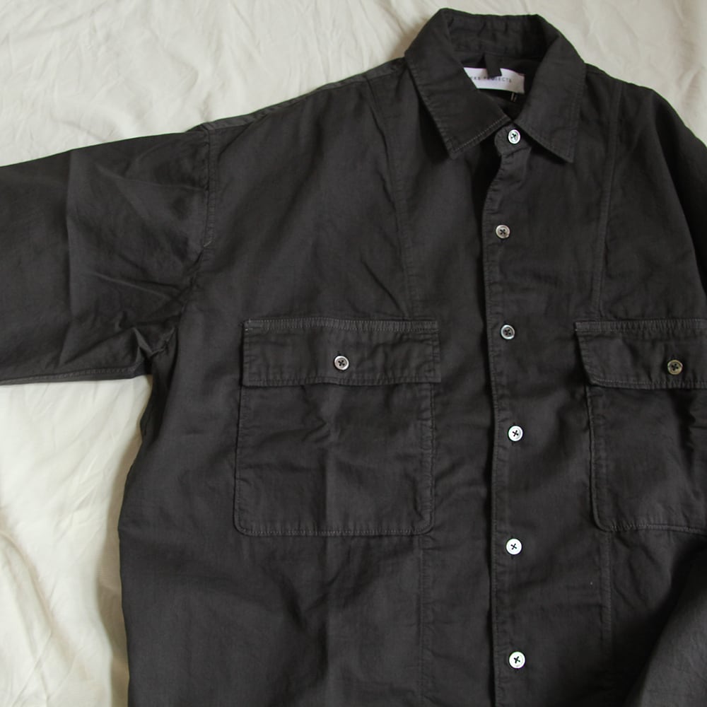 ワークシャツをモチーフに身巾にゆとりを持たせたリラックスシルエット。