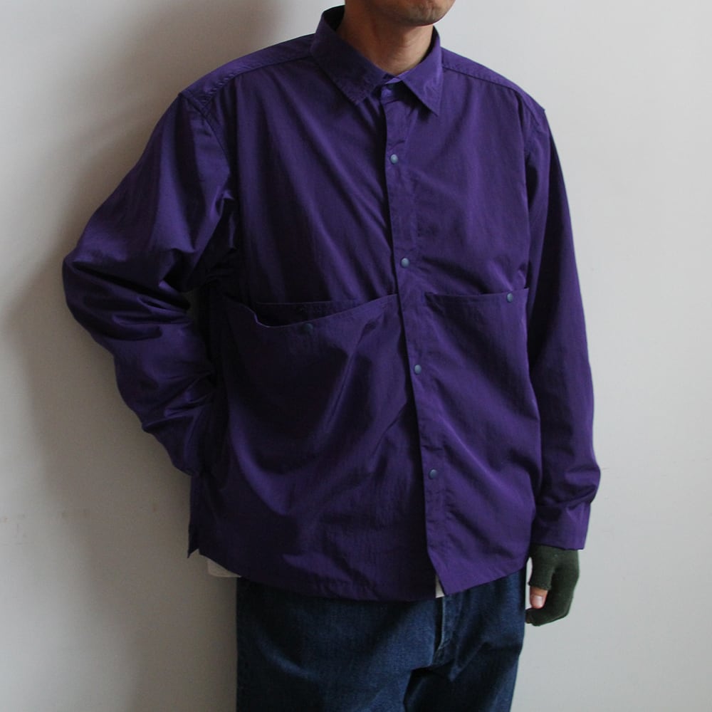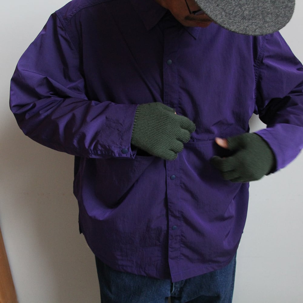 フロントには大きなポケット、内側には小さいポケットが隠れており、収納性に富んでおります。身幅に余裕のある作りで冬にはインナーとしてニットやスウェットと重ねて、春夏秋はライトアウターやエアコンの風除けとしても通年使える便利なアイテムです。