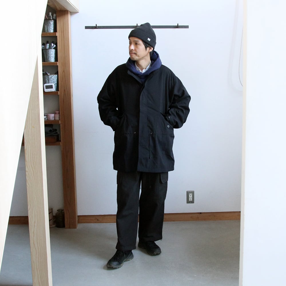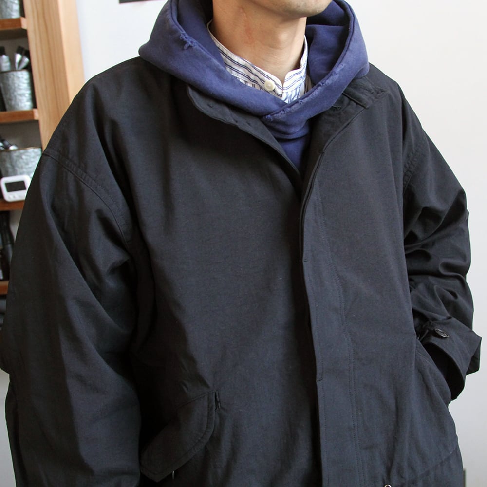 US ARMYのモッズコートのフィッシュテールなどの凝ったディテールや、たっぷりとしたシルエットの袖を再現しながらも、着丈を短くしたりフードを無くしスタンドカラーにすることでオリジナルの雰囲気を残しながらもすっきりと仕上げている。