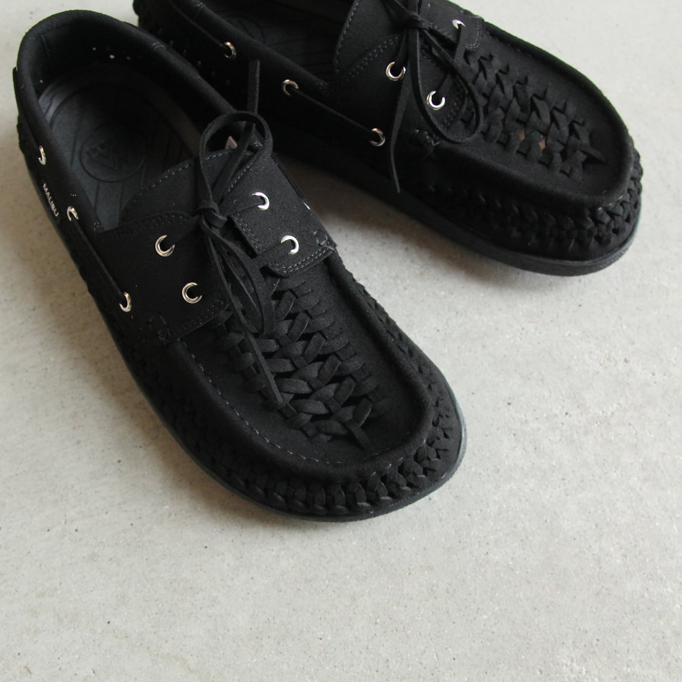 MALIBU SANDALS/マリブサンダル SKIPPER BOAT SHOE (BLACK/BLACK)