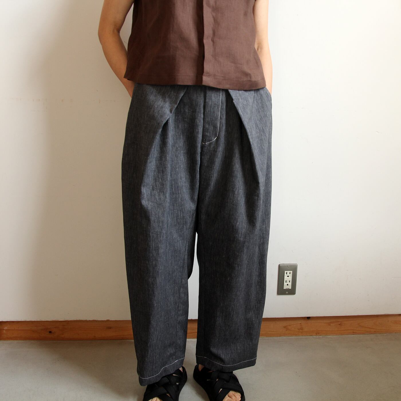 MANON/マノン SLANT TUCK WIDE PANTS (NAVY)