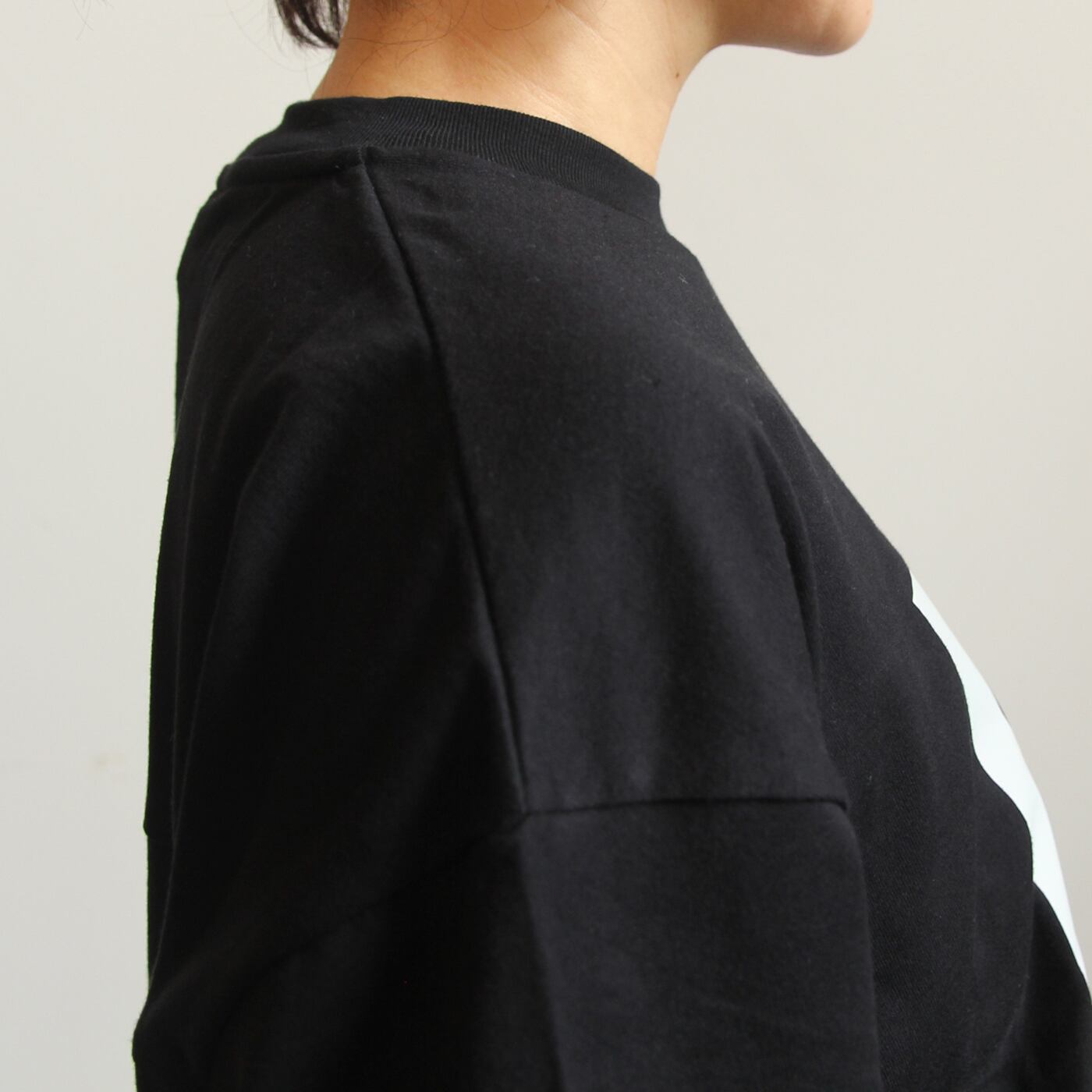 素材はクオリティーの高いコットン糸を使用した40/2の柔らかく膨らみのある肌触りの良い天竺素材です。身幅と肩幅にゆとりのあるリラックスシルエットのプリントTです。ベースに「私への花束」ブーケのプリントを重ね、カジュアルな中にやさしい華やぎをプラスしました。クルーネックで後ヨークに施したサイドタックが立体感を出し、裾はリブ仕様。ワイドボトムとの合わせでもバランス良く決まる一着です。